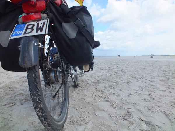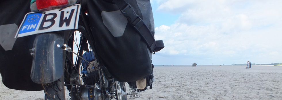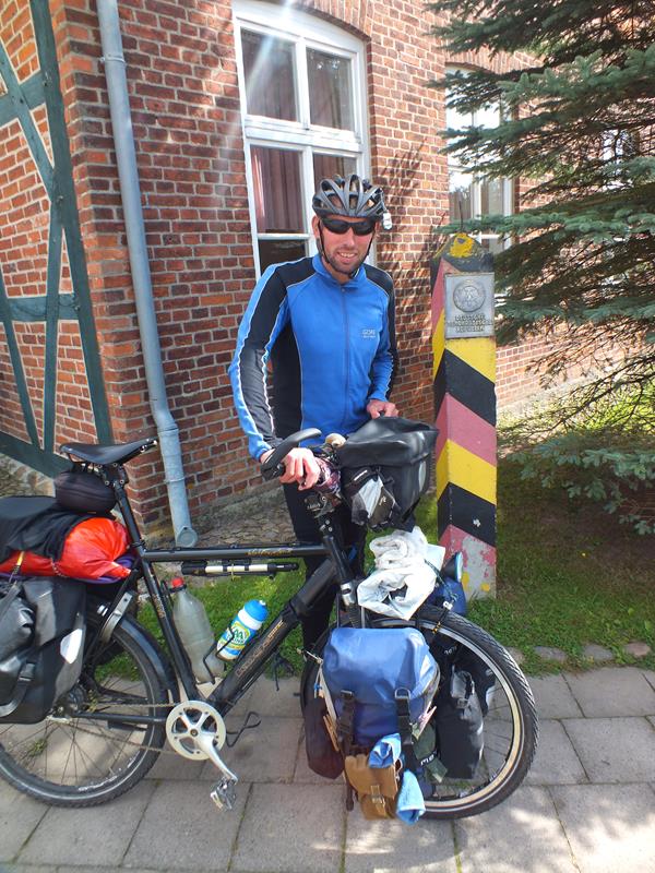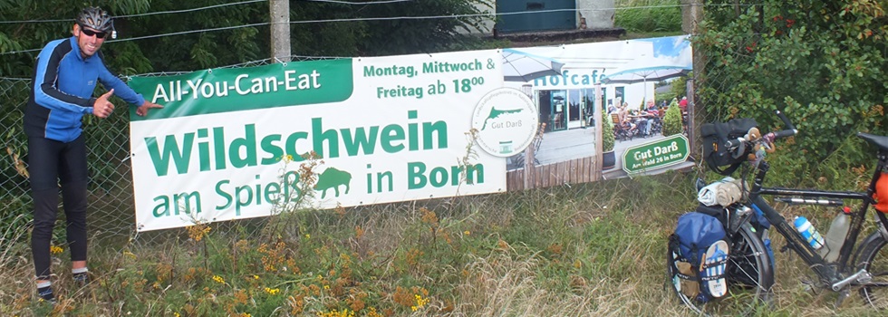 Mit eiskaltem Bier wird der Kartenwechsel zelebriert. Nicht nur wegen dem zweimaligem Vorkommen auf dieser Tour, nein, diesmal bin ich nach Deutschland eingereist – ohne erwähnenswerte Vorkommnisse der Grenzabfertigung. Ein weiteres Bier auf den Weltmeistertitel fällt mir sofort, ohne groß nachzudenken, ein. Selbst wenn sich das Heimatland mit einem Temperatursturz um ca. 8 Grad nicht unheimlich sympatisch macht, rollt es auf den perfekten Radwegen entlang der Küste wunderbar leicht durch die sehenswerte Kulisse der Seeheilbäder Ahlbeck und Heringsdorf. Ohwwww, bei solch einem Ortsnamen bekomme ich schon wieder Hungääär. Weiter geht es entlang auf der Insel Usedom über hügelige Waldlandschaft bis bei Wohlgast wieder Festland unter die Räder kommt. Sehenswert sind die Städte Greifswald und Stralsund, die für einen Kaffee oder Essstopp einladen. Auf der Insel Rügen übernachten wir in einem winzigen Dorf an der Küste. Wie schon erwähnt zeigt sich das Wetter eher kühl und wechselhaft mit einigen sehr starken Regenschauern bei Temperaturen von ca. 16-18 Grad. Zum Glück gelingt es fast immer einen Unterschlupf zu finden und die Schauer sind eher kurz. Ununterbrochen ist dafür West-Südwest Wind, der sich auf die Unsympatisch-Liste bereits an Tag 3 in den oberen Rängen platziert. Bis Windstärke 7 oder 8 soll er sein. Kite-surfer haben ihren Spaß, Radfahrer Richtung Westen eher weniger. Lächelnd kommen E-bike Fahrer Richtung Osten, also mit Rückenwind und ohne Gepäck, entgegen. Der Wind fängt nach 3 tagen an zu nerven, aber Ruhe muss bewahrt werden, nichts ist daran zu ändern. Durch die schönen Städtchen Warnemünde und Wismar und Pötenitz führt die Stecke jetzt entlang der innerdeutschen Grenze.