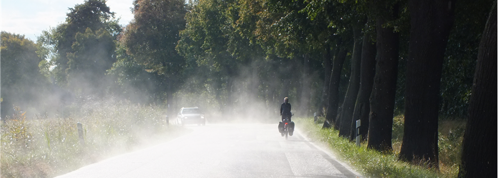 Bei der Suche nach einem Camping in und um Rödetal ist meine einzige Hoffnung nur ein Jugendcamp oder wildcampen. Glücklicherweise ist das Camp zu dieser Jahreszeit schon lange geschlossen und privat für eine Geburtstagsfeier vermietet. Ein runder 50er-Geburtstag soll es werden mit bis zu 60 Personen. Die Organisatorin sieht es sehr entspannt und problemlos, so dass ich vor ihrem Geburtstag mit einigen ihrer Freunden und Verwandten im Haus übernachten kann. Mit eingeladen werde ich ebenso zum schmackhaften Abendessen. Die Weiterfahrt am Folgetag ist etwas schwierig, da ich mit Nieselregen schon am Morgen begrüßt werde.