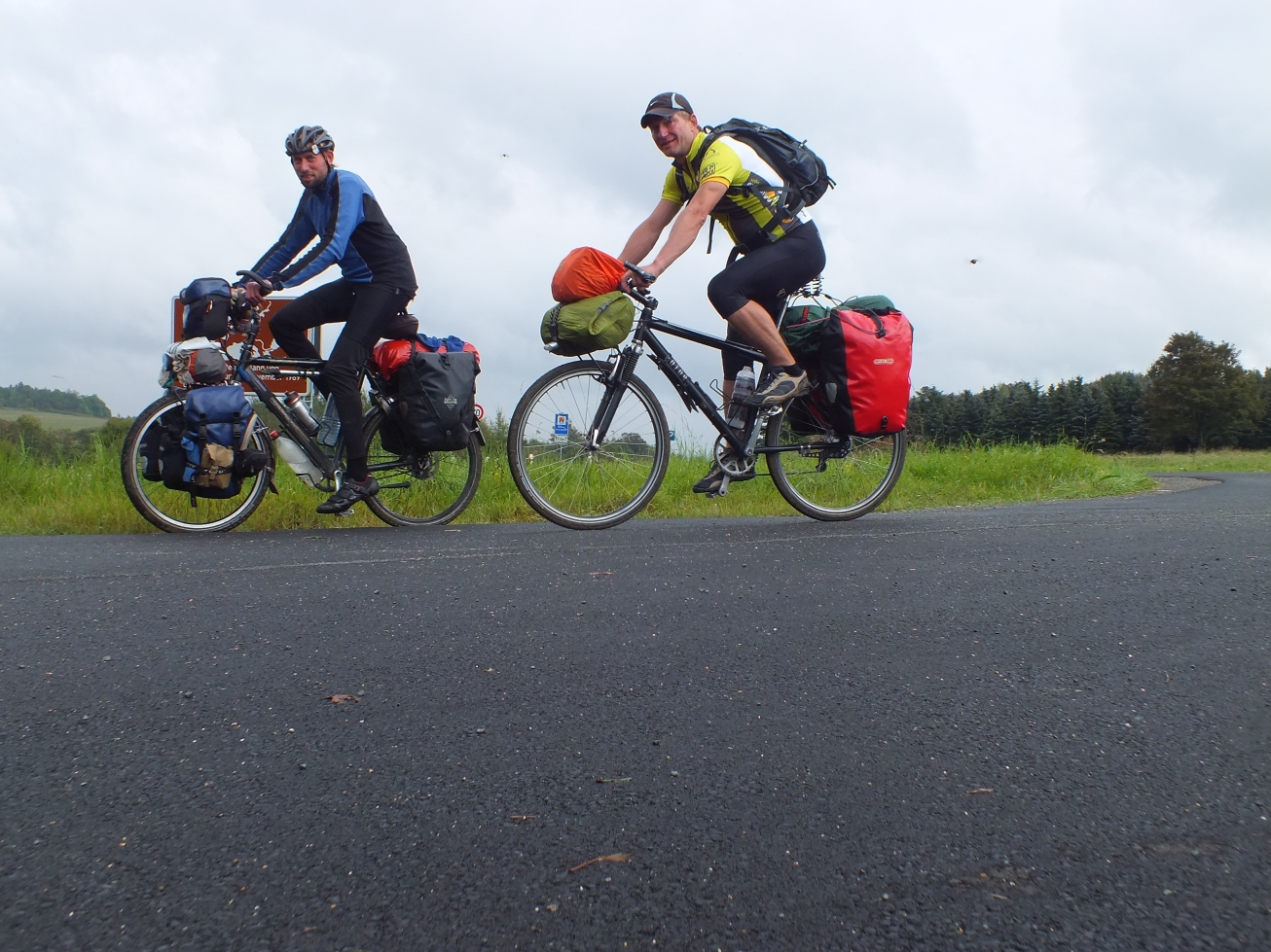 Ab Hof kommt Andreas auf Bozen hinzu, der gern einige Tag mit radeln möchte, und vorher auch noch nichts von dem bergigen Profil der Mittelgebirge weiß :-)) ich hole ihn am Bahnhof ab. Jetzt, als hätte er die Sonne aus Bozen mitgebracht, wird das Wetter allmählich besser und ein Altweibersommer ist vorhergesagt. Nicht weit von Hof geradelt treffen wir auf das ehemalige Drei-Ländereck DDR-BRD-CZ. Nicht besonders späktakulär aber genug um dort Pasta, die ich noch als Reserve dabei hatte, schmackhaft zubereiten. Jetzt geht es entlang der Tschechisch – Deutsche – Grenze!