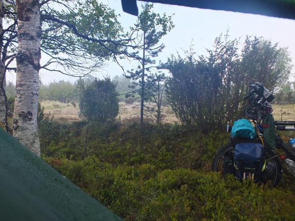 Die 2km bis zum Camping sind wirklich nicht weit, dort angekommen helfe ich, bevor ich mein Zelt aufbaue, zwei Finnen ihr Zelt aufzubauen. Es ist ein großes Zelt mit kleiner undeutlicherer Aufbauanleitung und nur in deutsch. Sie zögerten etwas meine Hilfe anzunehmen, wurden aber von den herannahenden dunklen Wolken eindeutig überzeugt. Sie beide kommen aus Helsiki, eine kommt seit ihrer Kindheit jeden Sommer hier hoch und hat sogar viel Verwandtschaft in diesem kleinen Ort. Selbst sie erzählt, dass das Wetter dieses Jahr sehr komisch sei, kein Schnee im Winter und ein kalter Sommer. Ich bestätige nur den Sommer. Kurz darauf kommt die Sonne durch und es wird zeit die Kleidung zu waschen.