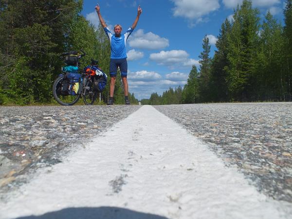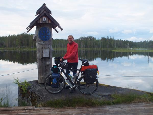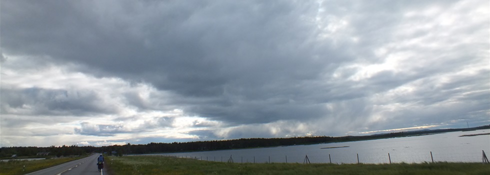 Dieser Lachs übertrifft allen den ich bereits gegessen hab, selbst die Farbe ist viel intensiver. Er sei hier aus der Gegend, wenn die Lachse die Flüsse hin-aufkommen, dann brauchst du nur am Rand stehen uns warten. Sein Englisch ist nicht gerade sehr gut aber trotzdem reden wir über eine Stunde und später kommt auch noch seine Frau hinzu. Im Winter erzählt er sind es hier ca. -20 bis -40°C und er fügt noch hinzu: „but somtimes it es getting cold“ B bevor ich gehe lasse ich mir noch einige Wörter übersetzten, da ich überhaupt kein Wort Finnisch kann. Während ich schreibe bereitet er mir noch ein Lunchpaket vor, für die Weiterfahrt, sagt er. Es sind dies kleinen gastfreunschaftlichen Dinge, die eine Radreise ausmachen und dadurch so einmalig werden lassen. Ich bedanke mich mehrfach für den sehr schmackhaften Lachs, Kaffee, und Kuchen .. sogar jetzt auf finnisch, selbst wenn die Aussprache nicht gut ist. Mit Rückenwind geht die fahrt durch den Finnischen Wald weiter, leichte Hügel hinauf und hinab, vorbei an unzähligen kleinen als auch großen Seen. Bis nach Kaamanen wo ich auf dem Camping zelte. In der Rezeption fallen mir Postkarten aus Finnland auf, die eine macroaufnahme eines Moskitos abgebildet hat, bei anschließenden Blick nach links erkenne ich eine riesige Palette an Moskitosspray. Ich bin froh um die 8- 10°C zu haben und keine dieser Tierchen um mich herum.