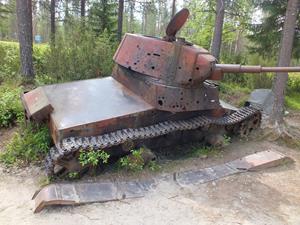 Leise führe ich meine Getriebenabe durch ihre 14 fahrstufen mit Rückenwind, den ganzen morgen lang, ohne pause und schon gegen 1 Uhr erreiche ich mein nächstes Ziel, den Wintersportort Salla nach ca. 85km. In Salla steht ein Infoschild, das dort damals 7 russische Panzer in das Dorf eingedrungen sind und die Finnen nur schlimmeres verhindern konnten, dadurch dass sie eine Brücke sprengten. Es ist ein sehr interessanter Ort aus geschichtlicher Sicht. Leider jetzt nicht mehr viel zu sehen. Das Museum hat leider geschlossen, ich besuche den Außenbereich wo es einige Wenige Zeugen der Vergangenheit zu besichtigen sind.