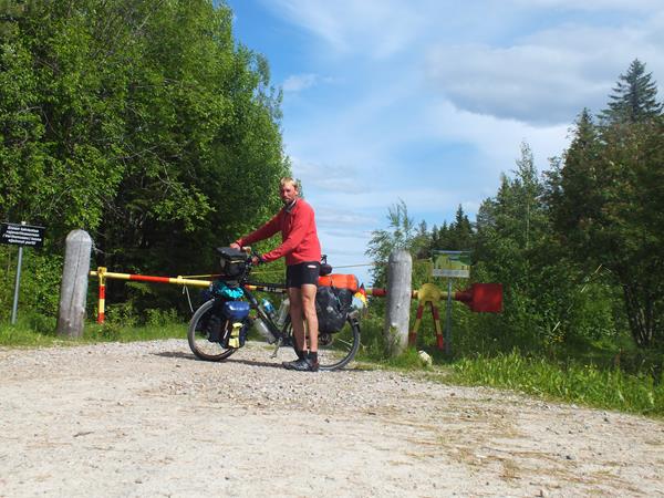 Am Morgen geht’s zurück Richtung Grenze, wo ich Richtung Russland einreisen möchte, es sind ca. 30km bis dort. Auf angenehmer Strasse ist der erste Teil zu fahren, die restlichen 13km ist wiedermal Schotterpiste. Scotterpiste deshalb, da es eine ruhigere unbefahrene Strecke ist, da die Haupteinreiseroute zu stark befahren ist. Um 11Uhr bin ich kurz vor der Autoschlage angekommen, im leichten Tritt bewege ich mich nach vorn und beobachte ob sich jemand unwohl fühlt wenn ich an allen Autos die eine ca. 1-2km langen Autoschlange bilden, vor-drängele. Im Nu stehe ich vorn. Mit dem ersten Schwung von Autos, die immer Blockweise ca. 8 Autos abgefertigt werden, komm ich mit dran und lasse mein Rad stehen um in den Warteraum zu gehen. Alles geht recht schnell, Pass durch die kleine Luke …. Die Uniformierte fragt nach meinem Auto, da sie keins gesehen hatte, ich bestätigte, dass ich mit dem Rad unterwegs bin. „Have a good day“ und sie gibt mir den Pass zurück. Beim verlassen der Grenzstation steht am Strassenrand das Schild „Russland“, ich schieße einige Fotos. Kurz später kontrolliere ich ob ich auch einen Stempel im Pass habe. Leider nicht. Mhm, waren das die Finnischen Grenzbeamten? Ich Radele noch ein Stück weiter, nach ca. 5km LKW Schlange auf der rechten Spur, dann die russische Seite. Die Beschilderung ist sehr unklar bis überhaupt keine sichtbar, wo ich mit dem Rad hinfahren sollte. An der Station, erstmal in die Menschenschlage einreihen, dann bin ich endlich dran, wieder Pass durch die kleine Luke, die gerade mal 1cm breiter ist als der Reisepass. Ich fülle das Einreiseformular aus, stelle mich nochmal hinten an. Alle Seiten werden geprüft und gescannt und Sie schlägt den Stempel in den Pass ich darf einreisen. Ich starte gleich losssss!