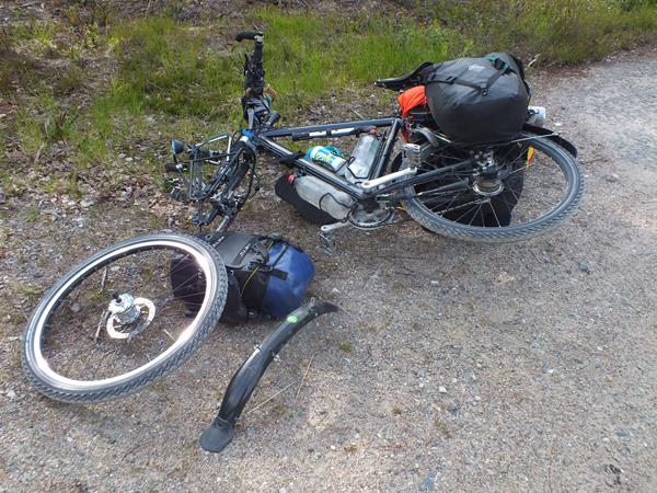 Am Abend treffe ich noch einen Albaner, der mit seinem Rad zuhause in Albanien gestartet ist, zum Nordkapp hoch und gerade auf dem Rückweg ist. Wie er erzählt ist er wohl schon sehr viele Touren in Europa gefahren. Auffallend ist seine recht simple und einfache Ausstattung, beim genaueren Hinsehen glaube ich nicht, dass ich mir nur 200km mit seinem Rad mit zugetraut hätte. Dagegen reise ich mit einem *** Klappcaravan. Am Abend verabschieden wir uns, da seine Route weiter direkt Richtung Süden führt und ich gen Osten weiterfahre.