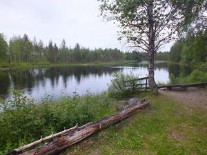 Wieder beginnt der Tag bewölkt, ich wüsste gern wo die ganzen Wolken herkommen, hier in Finnland hatte ich bis jetzt einen ganzen Tag Sonne und zwei halbe, daran ändert sich auch heute nichts, genauso wie die Bäume zusammen den großes langen Wald bilden. Die Beschreibung der Strecke deutet auf ca. 20-25km Schotterpiste hin, deshalb bleibe ich an einen der finnisch typischen Anglerstellen mit Hütte; worin sich immer eine Feuerstelle befindet, separater Hütte für Essensaufbewahrung und Toilettenhäuschen. Perfekt und ein See zum Baden!
