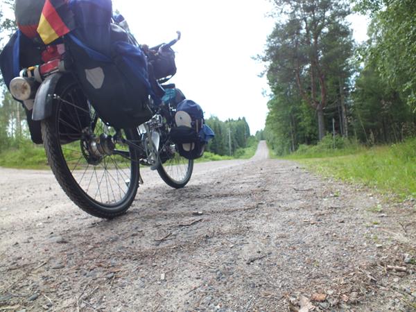 Auf der Weiterfahrt husche ich mit Rückenwind lange Zeit 30km/h, 35km/h durch die Weiten Finnlands. Der Wind steht wirklich perfekt von hinten, trotz der kühleren Temperaturen und der dickeren Kleidung macht es Spass auch mal wieder flaches Gelände zu fahren und den Horizont so weit zu sehen.