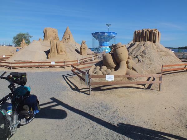 Eigentlich wollte ich nach dem Frühstück auf dem Camping kurz ins Zentrum einige Sachen anschauen und dann weiterfahren aber dort gab es für Kinder riesige Sandskulpturen, die ich mir genauer anschauen wollte.
