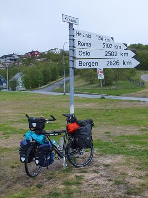 Der Regen brasselt noch immer auf das Zeltdach, ich bleib noch eine Weile liegen, keiner wartet auf mich. Hell ist es sowieso, also könnte mich auch Nachts jeder sehen. Bis alles zusammengepackt ist dauert es seine Zeit. Dann aber radele ich in Richtung Kirkenes. Auf dem Weg der einzige Camping, wovor ich kurz stoppte um mir einen Eindruck zu machen. Sofort sprachen mich zwei Deutsche mit einem Camper an und gaben mir weniger erfreuliche Infos: In Kirkenes gäbe es weder Kronen am Automat noch habe die Bank Bargeld zum wechseln, Russen würde die Automaten leeren. Perfekt mit meinen 300Konen komme ich nicht weit. Ich radele weiter in das Dorf um zu schauen wo Bargeld, Einkaufsmöglichkeiten, Tankstelle, Touristeninfo und die Hurtigruten sind um alle Info für die Fähren-Weiterfahrt bis Honningsvag zu bekommen. Alles problemlos, danke für die Nervosität. Gefühlt um die Mittagszeit war ich fertig mit meinen zu erledigenden Dingen, nicht nur vom Organisatorischem, ich bin ko. Ich radele zurück zum Camping, während ich mein Pasta koche in der schön eingerichteten Campingküche, schneide ich den frisch importierten Südtiroler Speck an. :-)