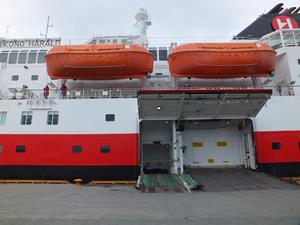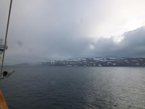 Endlich an Board geselle ich mich in die Internet area. Im Nu sind wir in Vardo, die östlichste Stadt in Norwegen, durch die Lautsprecher ertöhnt in fast allen europäischen Sprachen, dass diese stadt auf der Höhe von St Petersburg und Istanbul liegt. Gut zu wissen. Die Fahrt geht weiter … nach Süden ein atemberaubender Blick auf die Küste.