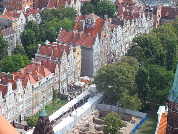 Über kleine Landstrassen, anders als beschrieben „ruhig“, führt die Route in Richtung Danzig. In einem kleinen Ort stoppe ich zum einkaufen, da der Sonnenschirm bei jetzt Icon 32 Grad um 10:30Uhr sehr verlockend ausschaut. Leider ist es Sonntag und um diese Uhr zeit wurde schon ausreichend Kaltgetränke (Bier) genossen, dass mir die Gesellschaft nicht besonders passt und ich esse etwas weiter in der Sonne. Heute wird es unerwartet heiß, bis zu 37 grad im Schatten. Etwas Abkühlung und für wenig Anstrengung sorgt der sehr starke Rückenwind, trotzdem ist es eigentlich nicht ideal um Rad zu fahren. ca. 8 Liter trinke ich ohne einmal auf die Toilette zu gehen, dies signalisiert den trockenen Wind der hier umher-weht mit ca. 40km/h. Eine Fährüberfahrt biete etwas Abwechselung auf der Weg, der zum Glück auch öfter im Schatten führt. Abends erreiche ich dann Danzig. Die wunderschöne Altstadt, die unmöglich fotografiert werden kann, ist eine jede Reise wert. Abends gehe ich mit Anja das Stadtzentrum anschauen.