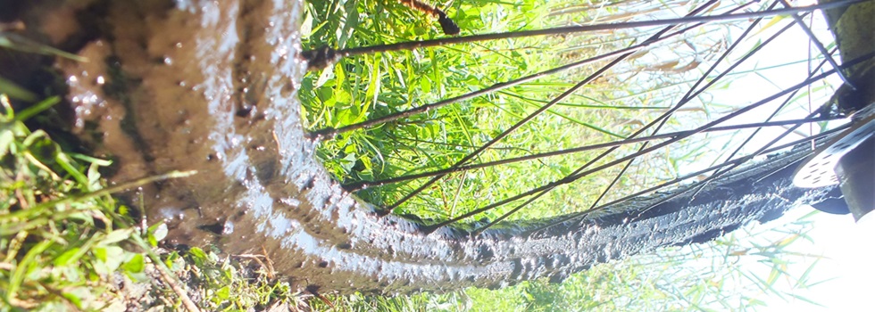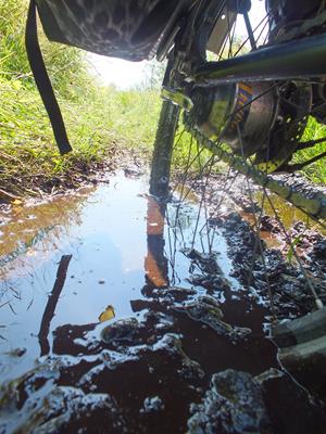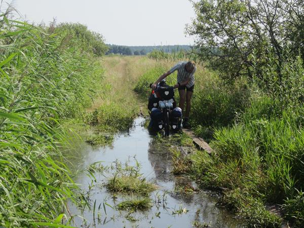 Fahren wird unmöglich. Immer wieder das Rad durch das Wasser waden und die Taschen tragen; an einigen Stellen wurden vor vielen Jahren Stege errichtet, die jetzt leider etwas veraltet und verfallen sind.