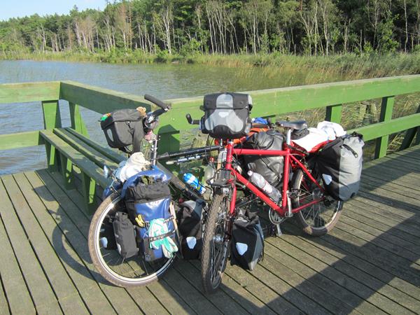 Die Strecke führt weiter auf dem offiziellem Ostsee bzw. R10 Radweg so dicht wie möglich an der Küste in Polen. Polnische Radweg sind, wie wir heute erfahren mussten etwas gewöhnungsbedürftig. Unbefestigt und weitestgehend, da es hier an der Küste viel Sand gibt auf SAND-Pisten. Die „Eiserne Vorhang“ -Karten verweisen ebenso auf diese Radwege. Was es bedeutet mit einem beladenen Rad auf Sand zu fahren gehört heute zu den größten Herausforderungen. Nicht nur das Vorankommen ist durch den Sand sehr erschwert sonder lenken quasi unmöglich. D.h. In nahezu 2 Sekunden steht man nachdem ein Sandfeld erreicht ist, anfahren unmöglich. Die Bezichung kräftzehrendes „Schiebe-Rad“ würde dem simplen „Fahrrad“ näher kommen. Da Bilder viel mehr als Worte beschreiben hier einige Fotos des Rad Wegs.