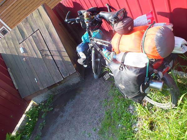 Eine Wohnsiedlung, hinter einer Mauer, die der Berliner nichts nachsteht. Stacheldraht, Kontrolltürme und ca. 90% der umherlaufenden Personen tragen Uniform. Ich fahre locker weiter. Es ist ca. 22Uhr noch taghell. Dann verschwindet der Zaun und ich erkenne identisches auf der rechten Seite. Wo kann man blos hier zelten, rechts im Wald, links im Wald? Bilder zu schießen vermeide ich, wer weiß mit was sie dann schießen. Ich fahre also weiter und weiter, es ist schon 22:30Uhr, der kleine auf der Karte eingezeichnete See, bietet nichts, außer die Hände zu waschen. Nach genau 100km, sehe ich im Wald ein gepflegtes Hüttchen mit Kinderschaukel Sitzbänken, Grill direkt am Wasser. Ich radele runter und frage nach, d.h. Mit Händen und Füßen und mit meinem KeinWörterbuch. :-) „Ja kein Problem signalisiert der Inhaber mir“ 150 rubbel. 1€=47 rubbel Klasse ein Camping, wahrscheinlich der einzige in Westrussland und für ca. 3€. Bei der Frage nach Duschen, ruft er einen Freund an der online vor dem Rechner sitzt und mir durch das Telefon eine Online- Überstzungsstimme, auf englisch erläutert :“Baue erst dein Haus auf, komm dann Duschen“. Duschen konnte ich in der Sauna. Ich bin sehr glücklich, da es viel Dreck heute in der Luft und durch die Pannen auch an Händen gab. Dieser Platz ist wirklich empfehlenswert, ich hatte bisher nicht so viel gepflegte m² außerhalb von St Peterburg gesehen.