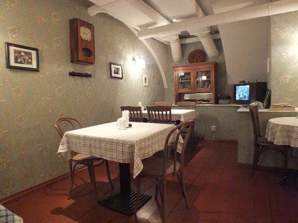 Das Restaurant ist wie in den 70er Jahren in Russland eingerichtet. Tapeten, Möbel, Fernseher, der sogar läuft. Sehr sehenswert, das Essen ist sehr schmackhaft zum kleinen Preis.