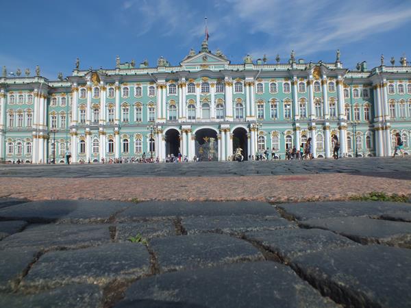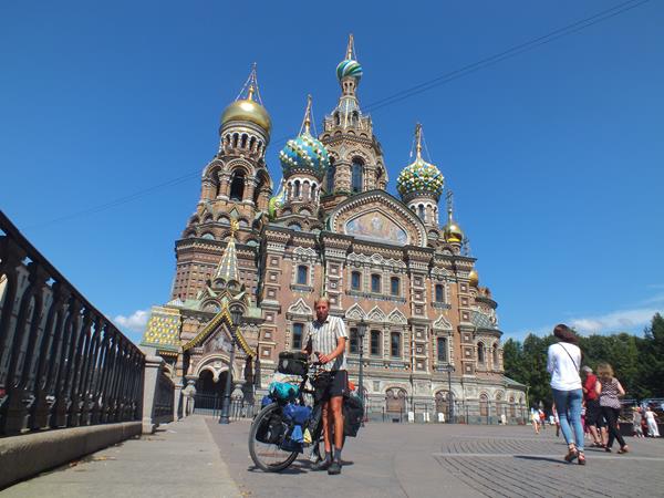 14.07.2014 Poljany – St Petersburg (80km)Morgens muss ich wieder durch die Baustelle, diesmal sehr früh und ohne Vorkommnisse. Bis nach St. Petersburg ist es noch weit und es muss stark befahrene Straßen geben. Genau wie oft erzählt wird es auch, die Strecke zieht sich sehr lange, abgesehen von einem ca. 15km langem Radweg, der viele Baumwurzeln unter der Asphaltdecke hat und diese zur Hügelfahrt verformte ist alles Straße. Teilweise bis zu vier Spuren mit 10cm Randstreifen und direkter Leitplanke. So muss ich mir die ganze rechte Spur gönnen, denn freiwillig macht hier kein Fahrer Platz. Nach ca. 60km komme ich in einen Vorort, der mich sofort an die Straßenzüge von Dresden erinnert. Identische Bauweise, der Straßenbahn, Asphaltverlegung und Architektur der umliegenden Häuser. Dabei müsste das Straßenbild nach Russischen Straßenbau und Architektur ausschauen. Nur noch 10km und ich komme der Innenstadt schon näher. Die ersten ca. 10-15 Personen antworten auf die Frage nach dem Stadtzentrum?, …. „No english“ Touristenbüro?, „no english“ Ojee, viel Spaß!!!