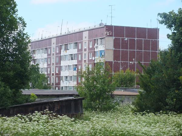 Ich passiere den Ort und nach den nächsten 20km wird der Straßenbelag auch schon wieder besser und ich kann normal weiterfahren. Hier gibt es nur hin und wieder Schlaglöcher, die sehr tief sind ca. 10-20cm aber gut sichtbar. Im nächsten Ort wieder ein ähnliches Straßenbild. Hier gibt es zusätzlich noch große Betonbauten mit Wohnungen, selbst diese sind vollkommen veraltet und ungepflegt, wahrscheinlich seit dem Bau nichts mehr gemacht. Der Ort lädt nicht zum anhalten ein und so fahre ich mit ruhigem Tempo hindurch und schaue mich auf der Weiterfahrt nach einige Übernachtungsplätzen um. Am Abend finde ich dann einen recht schönen Platz in einer kleinen Waldlichtung und bleibe dort. Mein erlebnisreicher erster Tag in Russland.