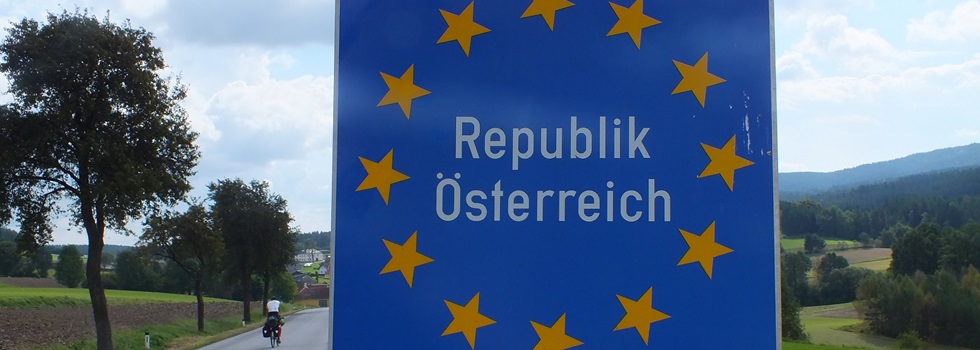 Heute ist es nicht weit, im morgendlichen Nebel ziehe ich los und trinke einen Kaffee in einer der nächsten Gaststuben. Für mich der perfekte Ort um einige Dateien hochzuladen, es ist ein Kurort, hier gibt es nur Rentner als Gäste, die mitsichereit nict alle ein smartpfone dabeiaben, so ist volle bandbreite für mich nutzbar. Mit höchstgeschwindigkeit kann ich alles updaten. Jetzt geht’s weiter: Bratislava ist nicht weit, nur 15km. Schnell bin ich dort, genauso schnell wie der Nebelschleier weggezogen ist. Ich überquere die Grenze in die Slovakei.