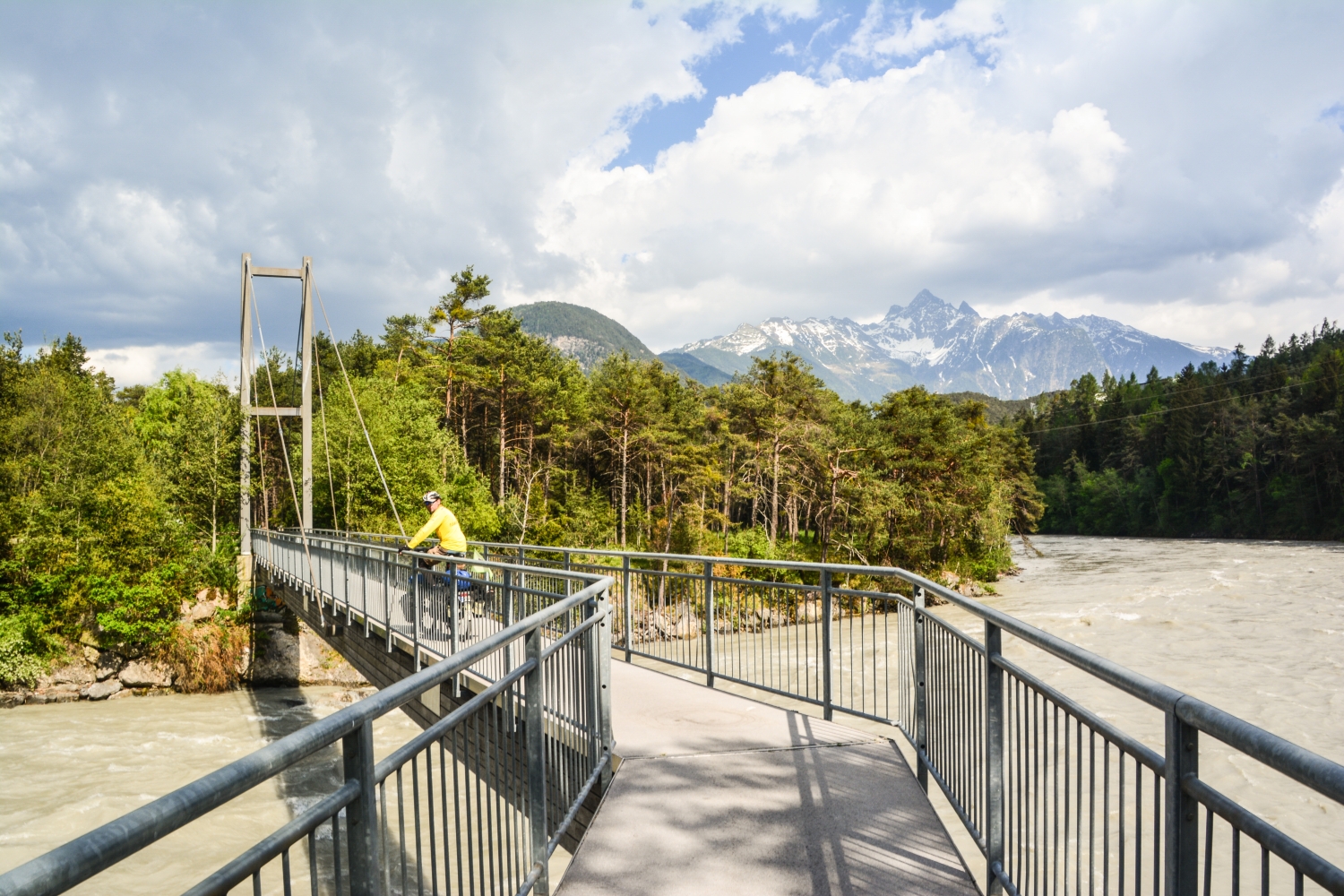 Wir erreichen unser 29. Reiseland, Österreich und legen nochmals eine Megaetappe ein denn das Wetter soll umschlagen und wir wollen es deshalb noch schaffen zu unseren Freunden Niki und Philip in Innsbruck zu radeln. Hinter dem Rechenpass erreichen wir zügig die Inn und radeln auf dem "bequemen" Innradweg bis nach Innsbruck.